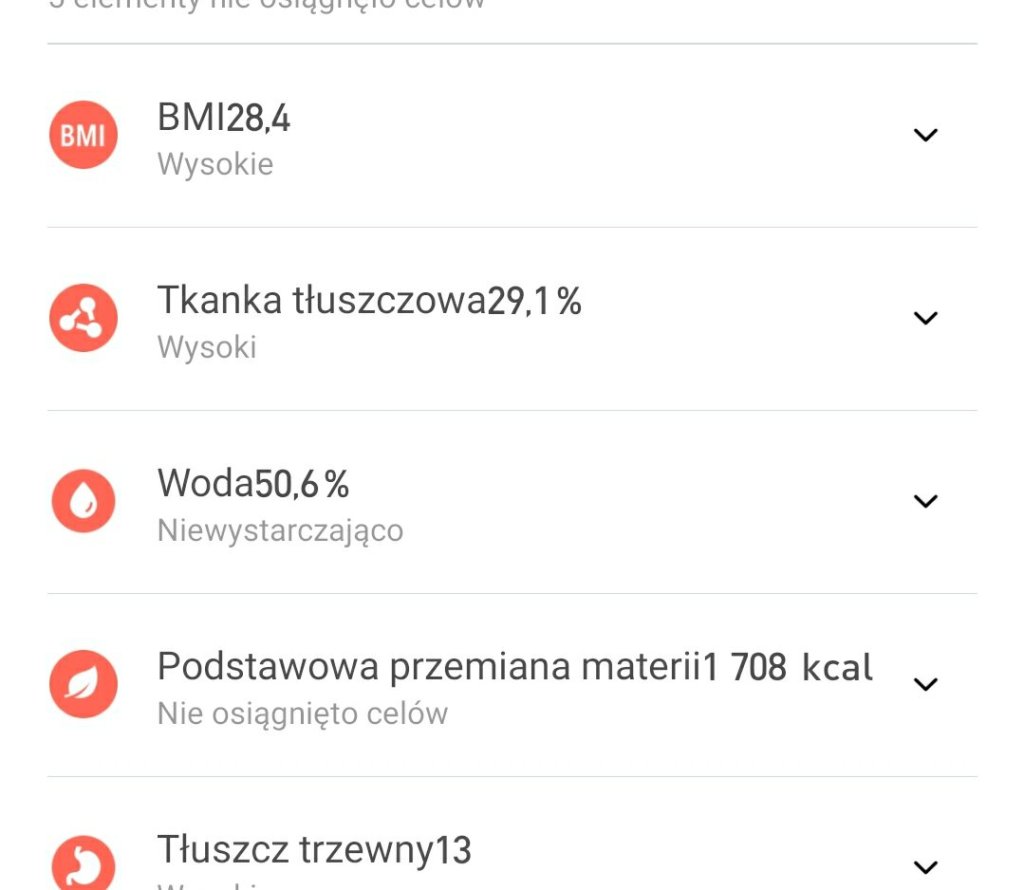 Waga elektroniczna od Xiaomi pokazuje następujące parametry: