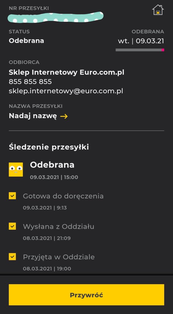 Gdyby ktoś zwracał zakup do euro RTV AGD to tutaj jest zestaw danych: