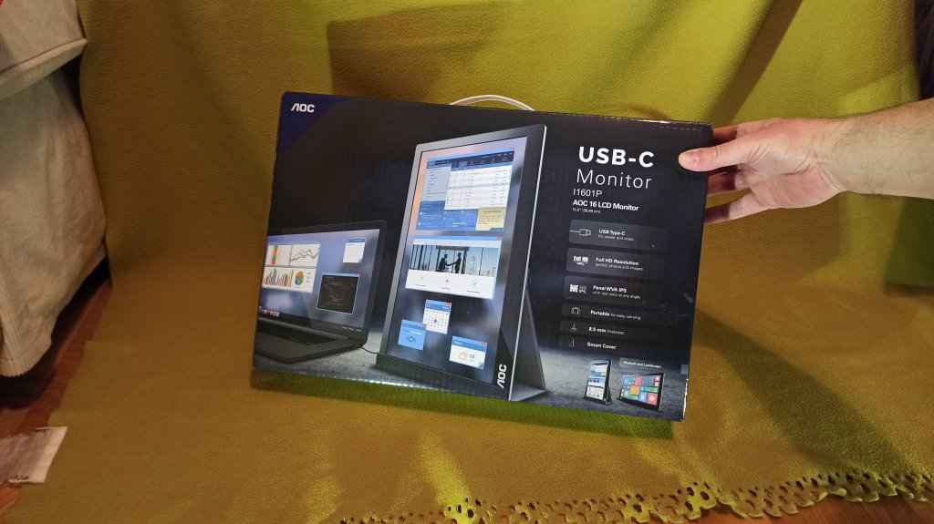 Taki ultralekki monitor nie ma własnej baterii zatem prąd pobiera z laptopa lub smartfona przez USB-C.