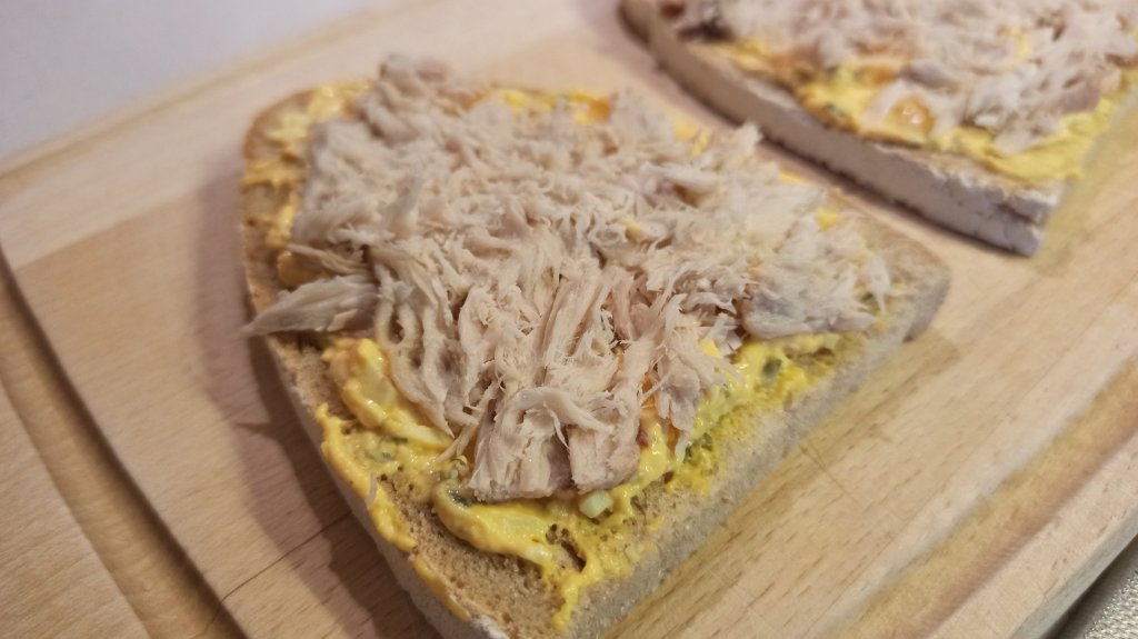 Idealnie jest serwować na bułce lub kropce chleba posmarowanym pastą jajeczną