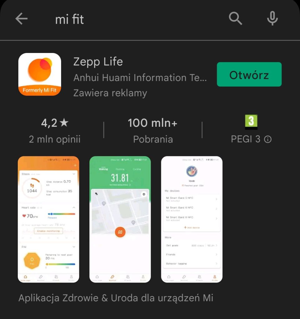 Instrukcja do Zepp Life (byłe Mi Fit)
