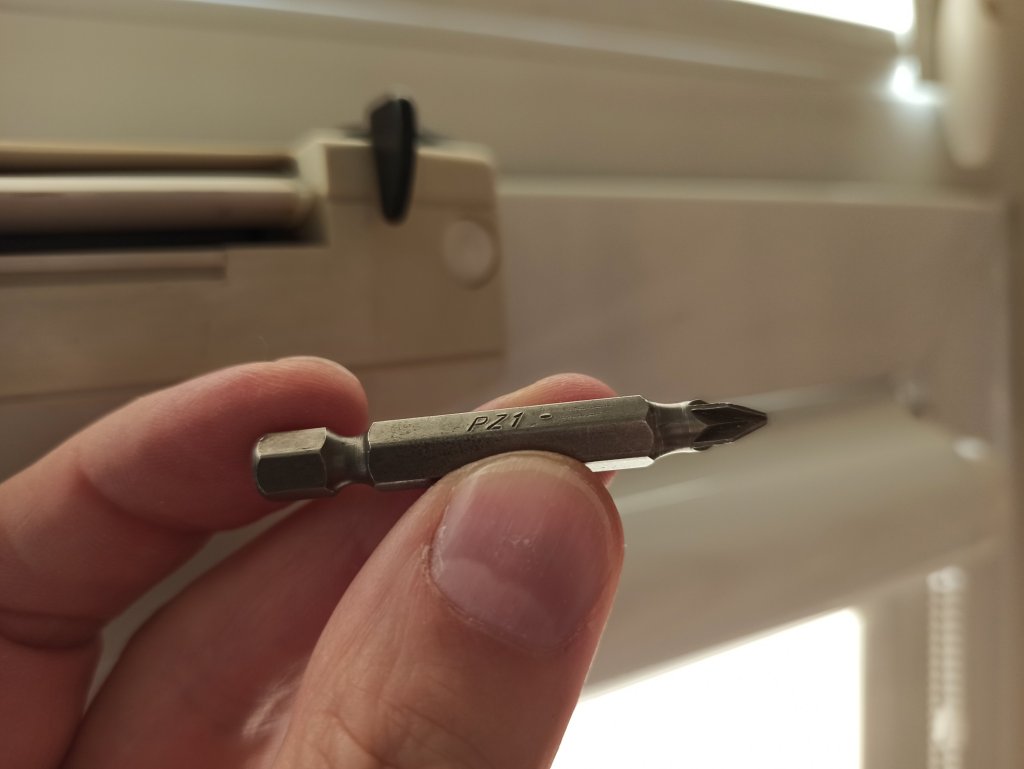 Potrzebujemy wkrętak z końcówką PZ1 aby zdemontować szynę z okna.