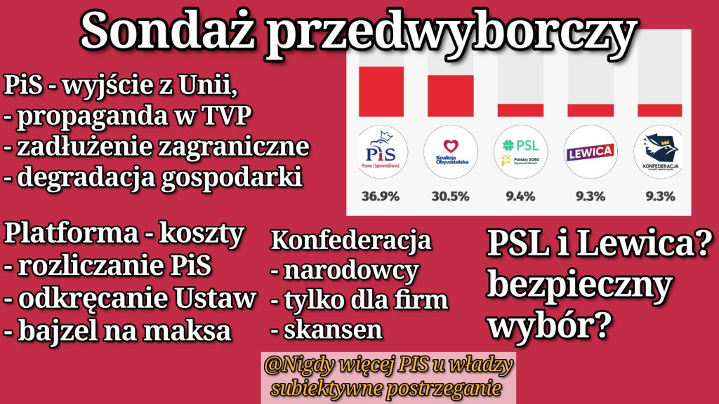 Koalicja PiS i Konferencji to koszmar, patokatole i wrogowie kobiet, zwolennicy średniowiecza i miłośnicy socjalu kosztem pracujących uczciwie. Takie moje zdanie.