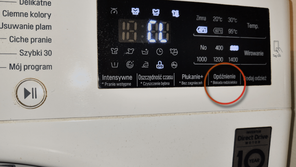 Ikony na wyświetlaczu w nowoczesnej pralce.