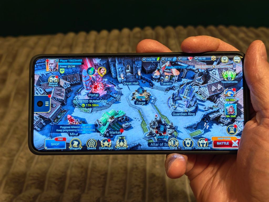 Na plus wypada również bateria 5520 mAh. Przy umiarkowanym użytkowaniu telefon bez problemu potrafi działać kilka dni, a przy intensywnym graniu zapewnia wiele godzin pracy bez konieczności sięgania po ładowarkę. Szybkie ładowanie 45 W pozwala wrócić do pełnej baterii w czasie krótszym niż godzina, a dodatkowym atutem jest ładowanie zwrotne, które w praktyce przydaje się do zasilania akcesoriów, np. mikrofonu bezprzewodowego.